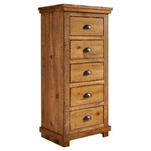 Progressive Furniture Willow 5 Drawer Wood Lingerie Chest in Distressed Pine Tan