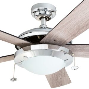 Prominence Home Bolivar 52″ Chrome Ceiling Fan with 5 Blades, Integrated LED Light Kit, Pull Chains & Reverse Airflow