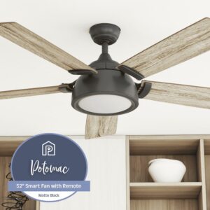 Prominence Home Potomac 52″ Matte Black Modern Ceiling Fan with 5 Blades, Integerated LED Light Kit & Smart Remote