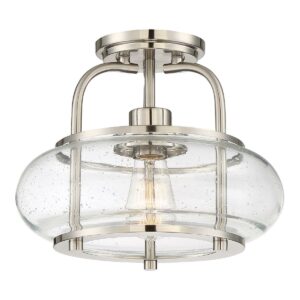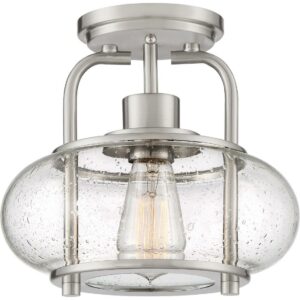 Quoizel Lighting Trilogy – One Light Semi-Flush Mount, Brushed Nickel Finish with Clear Seedy Glass