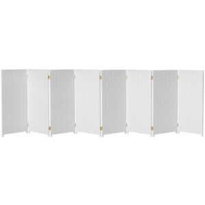 Red Lantern 3 ft. Short Woven Fiber Folding Screen – White – 8 Panel