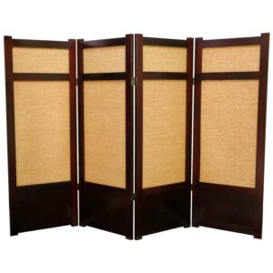 Red Lantern 4 ft. Short Fiber Weave Folding Screen – Dark Red – 4 Panels