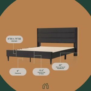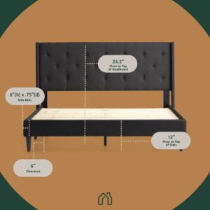 Rest Haven Astoria Wingback Tufted Upholstered Bed, Queen, Gray