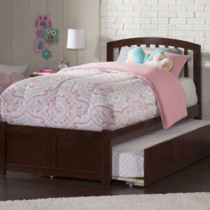 Richmond Twin Platform Bed with Flat Panel Foot Board and Twin Size Urban Trundle Bed in Walnut