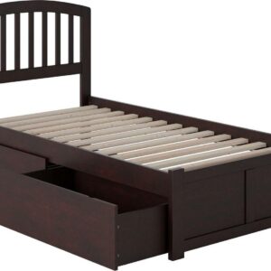 Richmond Twin Platform Bed with Flat Panel Foot Board and 2 Urban Bed Drawers in Espresso
