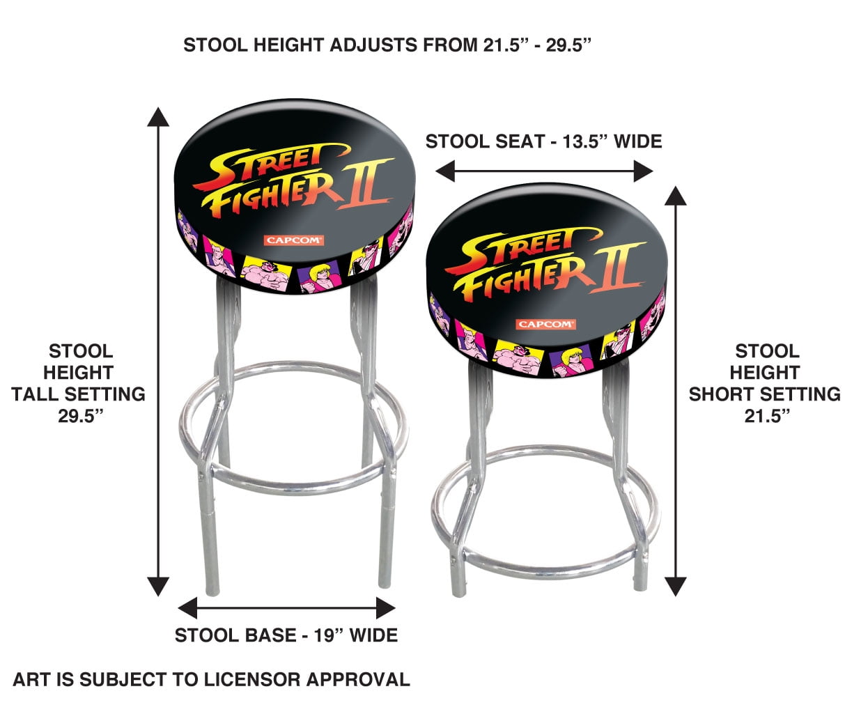 Arcade1Up Stool Capcom Legacy Edition Street Fighter Adjustable Stool, 21.5″ to 29.5″ – SET OF 2