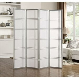 Roundhill Furniture Giyano Rice Paper/Wood 4-Panel Screen Room Divider in Sliver