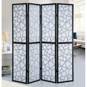 Roundhill Furniture Quarterfoil infused Diamond 4-Panel Room Divider in Silver