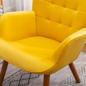 Roundhill Furniture Leiria Velvet Tufted Accent Chair with Ottoman in Yellow