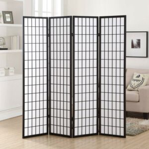 Roundhill Furniture Hoceima Oriental Shoji 4 Panel Room Divider, 71″ Tall, Black