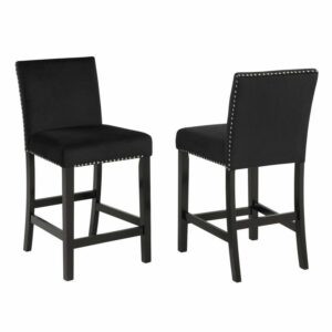 Roundhill Furniture Contemporary Velvet 24.5 in. Counter Stool – Set of 2 – Black