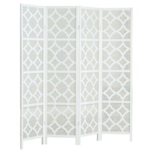 Roundhill Furniture Quarterfoil infused Diamond 4-Panel Room Divider in White