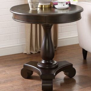 Roundhill Furniture Rene Round Wood Pedestal End Table in Espresso