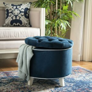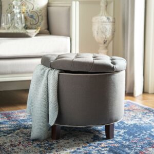 SAFAVIEH Amelia Contemporary Glam Tufted Storage Ottoman, Berry