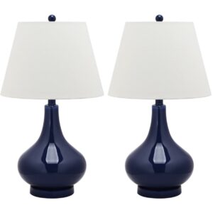 SAFAVIEH Amy 24 in. H Gourd Solid Glass Table Lamp, Navy, Set of 2