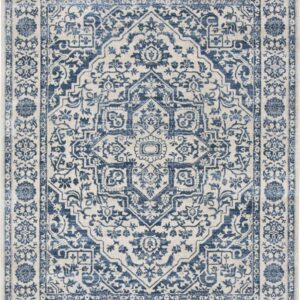 SAFAVIEH Brentwood Ellen Damask Area Rug, Cream/Blue, 5’3″ x 7’6″