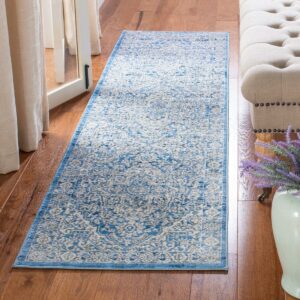 SAFAVIEH Brentwood Adams Oriental Runner Rug, Ivory/Navy, 2′ x 10′