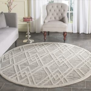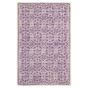 SAFAVIEH Cambridge Liam Geometric Wool Area Rug, Ivory/Purple, 6′ x 6′ Round