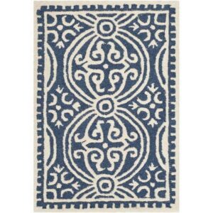 SAFAVIEH Cambridge Leslie Geometric Wool Area Rug, Navy Blue/Ivory, 8′ x 10′