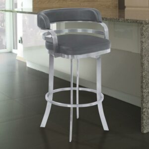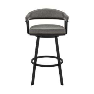 Armen Living Prinz 30″ Faux Leather & Metal Swivel Bar Stool in Gray/Black