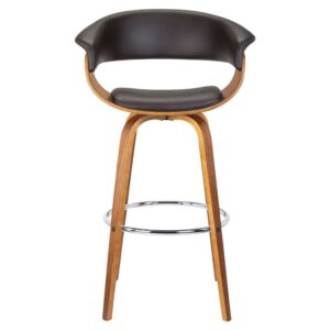 Armen Living Julyssa 26″ Faux Leather/Wood Swivel Counter Stool in Brown/Walnut