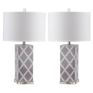 SAFAVIEH Garden Lattice 27 in. H Geometric Table Lamp, Grey, Set of 2