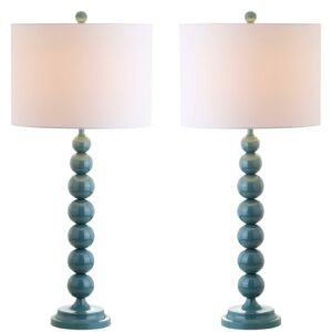 SAFAVIEH Jenna 32 in. Blue Iron Table Lamp with Off-White Cotton Shade, Set of 2