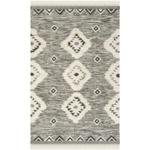 SAFAVIEH Kenya Pierce Geometric Diamonds Fringe Area Rug, Black/Ivory, 5′ x 8′