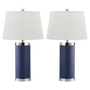 SAFAVIEH Leather 25 in. H Retro Column Table Lamp, Grey, Set of 2
