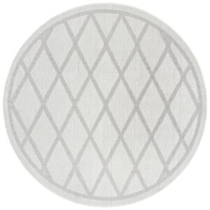 SAFAVIEH Machine Washable Rug Indoor/Outdoor Bermuda Collection – Bermuda Dulcibella Geometric Diamonds Indoor/Outdoor Area Rug Ivory/Light Grey, 6’7″ x 6’7″ Round