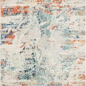 SAFAVIEH Madison Fleur Distressed Abstract Area Rug, Cream/Orange, 5’3″ x 7’6″