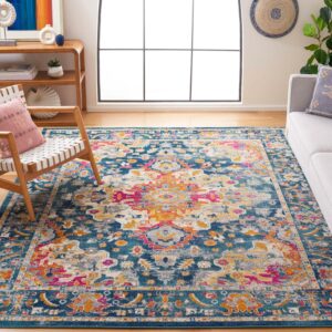 SAFAVIEH Madison Flowers Vintage Abstract Area Rug, Grey/Blue, 9′ x 12′