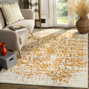 SAFAVIEH Madison Joandra Vintage Floral Area Rug, Ivory/Orange, 5’3″ x 7’6″