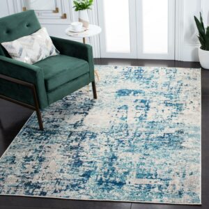 SAFAVIEH Madison Flowers Vintage Abstract Area Rug, Ivory/Turquoise, 8′ x 10′