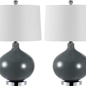 SAFAVIEH Marquesa 24 in. Cream Ceramic Table Lamp w/Oatmeal Cotton Shade, Set of 2
