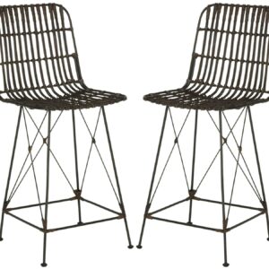 SAFAVIEH Minerva 23″ High Wicker Barstool, Brown/Black, Set of 2