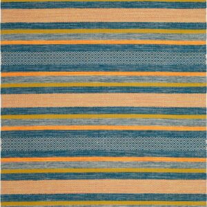 SAFAVIEH Montauk Maisy Striped Soft Braided Cotton Area Rug, Blue/Orange, 5′ x 8′