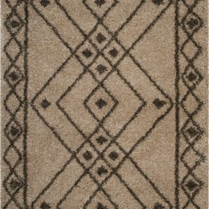 SAFAVIEH Moroccan Fringe Erksine Geometric Shag Area Rug, Mushroom/Grey, 5’1″ x 7’6″