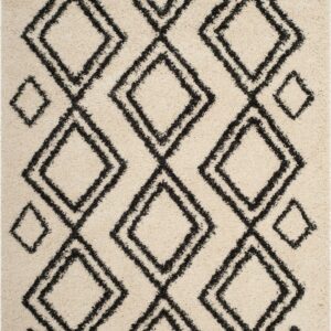 SAFAVIEH Moroccan Fringe Kaelea Geometric Shag Area Rug, Cream/Charcoal, 5’1″ x 7’6″