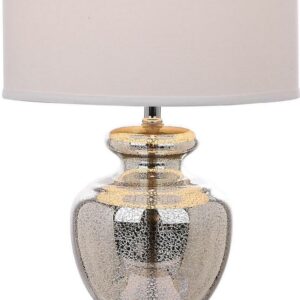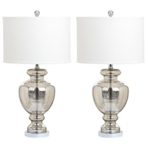 SAFAVIEH Morocco 27 in. H Solid Glam Glass Table Lamp, Silver/Ivory, Set of 2