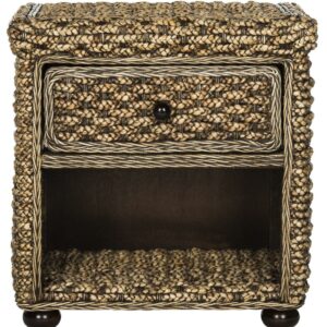 SAFAVIEH Musa Braided Brown Wash Wicker Nightstand With Drawer Brown Wash
