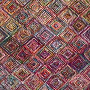 SAFAVIEH Nantucket Kline Geometric Diamonds Cotton Area Rug, Multi, 8′ x 10′