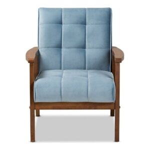 Asta Mid-Century Modern Light Blue Velvet Fabric Upholstered Walnut Finished Wood Armchair