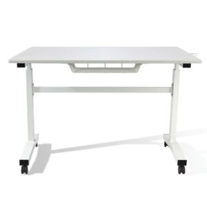 Atlantic Sit Stand Height Adjustable Desk with Side Crank and Casters in White
