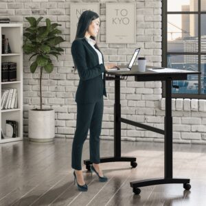 Atlantic 28-41″ Height Adjustable Desk – Sit or Stand, with Rolling Casters, Black