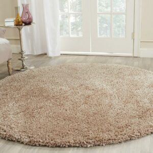 SAFAVIEH Popcorn Solid Polyester Shag Area Rug, Beige, 6′ x 6′ Round