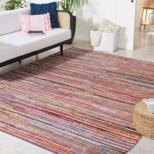 SAFAVIEH Rag Robynne Striped Cotton Area Rug, Blue/Multi, 9′ x 12′