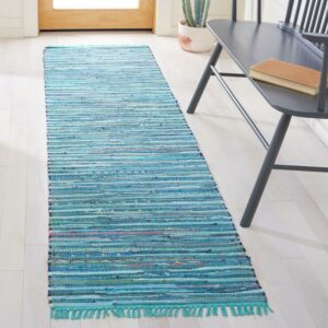 SAFAVIEH Rag Robynne Striped Cotton Runner Rug, Blue/Multi, 2’3″ x 14′