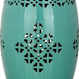 Safavieh Quatrefoil Drum Indoor/Outdoor Garden Patio Stool, Light Blue