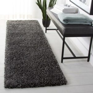 SAFAVIEH Royal Ronnette Solid Plush Shag Runner Rug, Charcoal, 2’2″ x 8′